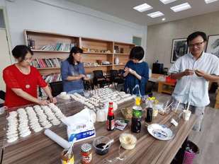 为庆祝第36个教师节,9月10号,艺术设计学院全体教职员工及外聘教师在艺术楼三楼教师发展中心开展教师节包饺子活动。