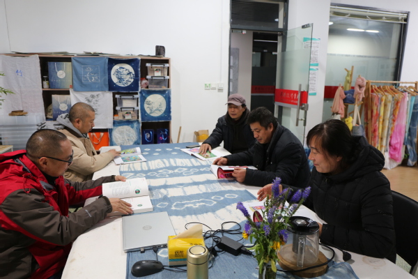 邱兴雄来到环境艺术工作室,仔细查看了学生正在进行的毕业设计作品,翻看了毕业设计画册,并询问了创作思路、表现技巧等,并就设计过程中遇到的困惑予以交流。郑军德就扎染工作室的建设与发展,文创产品的研发,以及余东农民画的发展等交换意见。