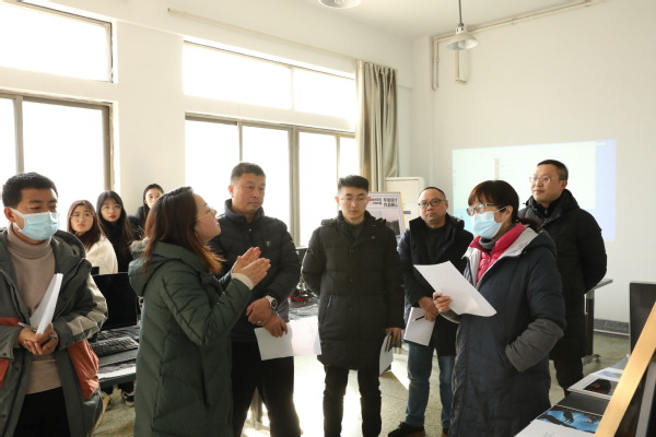 近日,艺术设计学院展开“2020-2021-1”学期课程期末教学大检查工作。学校教务处副处长廖建平、规划与督导处副处长余文利、督导员范晓江一行3人来我院开展期末教学检查工作。院长叶云龙、副院长许金友、潘宇以及专业主任霍庆福、何敬陪同检查。