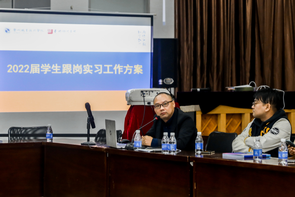 在连续的三次会议上,许金友副院长分别对校内指导老师、实习对接企业负责人、2022届全体学生就跟岗实习工作作了详细全面的解读,明确了校内指导教师的跟岗实习工作职责,实习企业职责、跟岗实习学生职责。范洪梅副书记强调了实习期间的安全问题、学生请假制度、外出实习疫情防控要求。