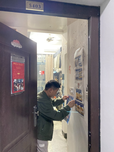 除此之外,为了加强同学们的自我防范意识,谨防电信诈骗,此次走访的一个重要环节就是给学院的每个寝室分发并张贴《反诈十条》。学院通过在寝室张贴《反诈十条》的方式,使防范网络诈骗的意识深入人心,减少和杜绝网络诈骗事件。