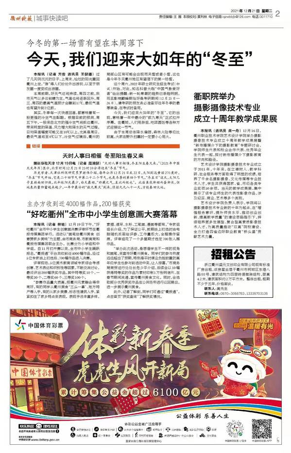《衢州晚报》2021.12.21 (通讯员 龚一舟)