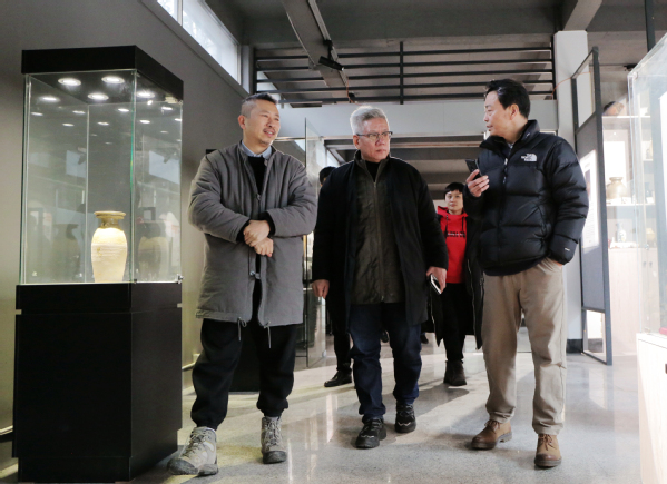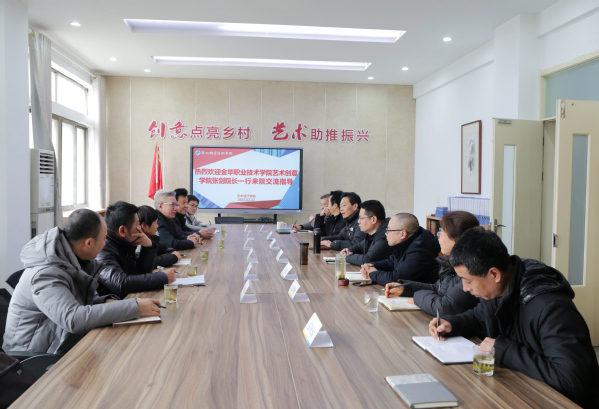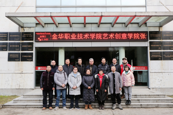 2月23日下午,金华职业技术学院艺术创意学院院长张剑一行七人来院交流指导。艺术设计学院相关负责人陪同参观了艺术楼展厅。