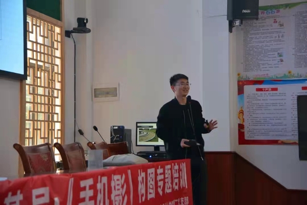 培训课上何敬老师以基础摄影构图为主要讲点,分别列举了对称构图,对角线构图,三分线构图等构图方式。学员们都认真细心的学习并记录。老师还结合以往的优秀的摄影作品进行案例分析,并找出反面案例结合比较,直观的呈现给学员,不同构图所带来的观感是不一样的。另外,何敬老师总结出多种错误的摄影手法,让学员们一目了然。除了课上的理论内容,还进行了实践操作,老师和党支部学生一起帮助学员,手把手指导拍摄,使的学员更加得心应手,也让此次活动气氛更加融洽。老年人们通过实践练习,在学习手机摄影技能的同时,也进一步提升了信息化智能媒介素养。