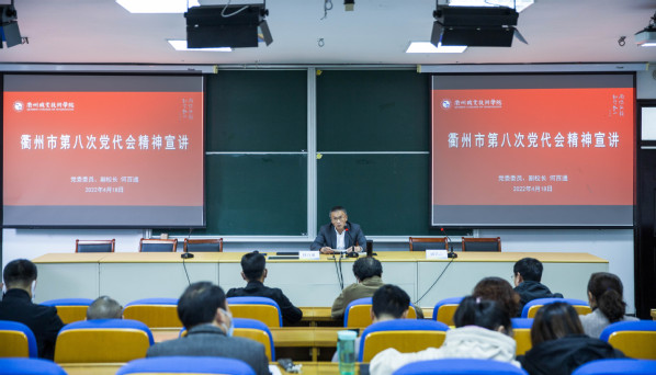 4月18日下午,校党委委员、副校长何百通为艺术设计学院、公共教学部教师作衢州市第八次党代会精神专题宣讲。