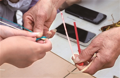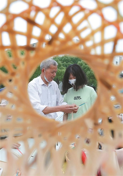 竹编艺人指导学生制作作品。 通讯员 何雯震 摄
