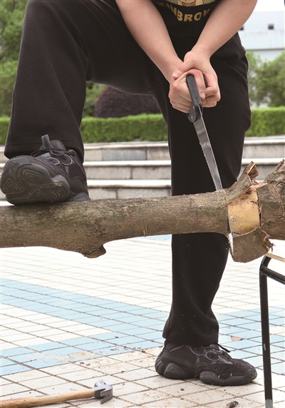 木工师傅劳作时的手。 通讯员 杨一梦 摄