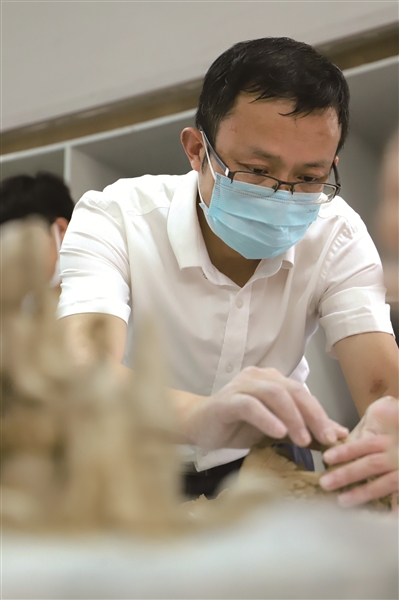 彩绘泥塑制作技艺传承人张继新向学生展示技艺。 通讯员 张文南 摄