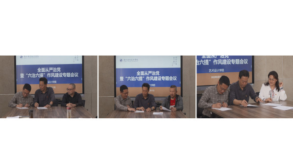 5月17日下午,艺术设计学院在三楼会议室召开2022年全面从严治党暨“六治六提”作风建设专题会议。艺术设计学院党政领导班子成员,各党支部书记,各教研室主任和综合办、学工办、实训中心负责人等参加会议,会议由党总支书记戚景云主持。