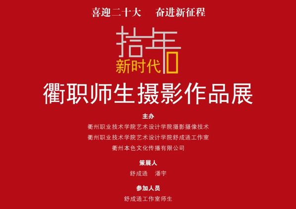近日,衢州职业技术学院艺术设计学院摄影摄像技术专业、舒成通工作室、衢州本色文化传播有限公司联合举办“喜迎二十大 奋进新征程——拾年”师生摄影作品展。