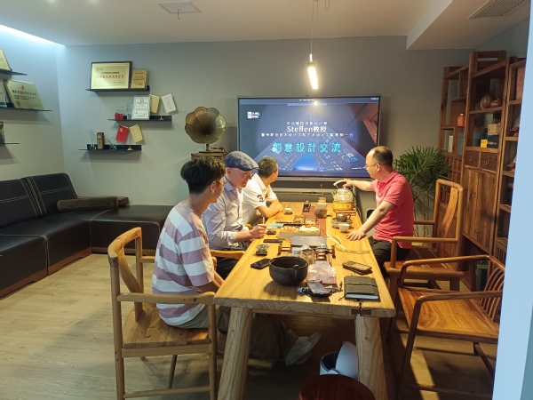 516日,艺术设计学院副院长霍庆福、相关专业教师陪同史蒂芬教授走进浙江灵动文化科技有限公司、杭匠(浙江)环境工程有限公司两家衢州市设计行业龙头企业。史蒂芬教授与公司的负责人、设计团队就东西方设计差异、应用设计与学术设计融合、设计创意发展趋势展开深入交流。