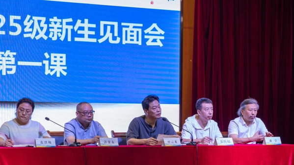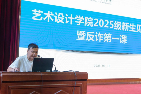 9月16日上午,艺术设计学院在1号报告厅召开2025级新生见面会。艺术设计学院院长叶云龙、党总支书记许金友、副院长潘宇、副院长霍庆福、党总支副书记范洪梅以及艺术设计学院2025级所有新生和新生班主任出席会议。见面会由艺术设计学院党总支副书记范洪梅老师主持。