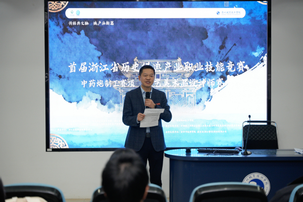 姚水洪代表学校全体师生对出席开赛式的各位领导、指导老师、参赛选手和裁判员表示热烈的欢迎。并向参会人员介绍了学校在人才培养、专业建设、实训基地建设等方面取得的成果。他表示,作为此次比赛的协办单位,将全力做好赛事组织与服务保障,努力营造规范、公平、专业的竞赛环境。他希望以此次大赛为契机,与各参赛单位深入交流,旨在“挖掘历史经典产业文化底蕴与时代价值,激发创新活力,培育专业人才”,为浙江历史经典产业高质量发展注入强劲动能。