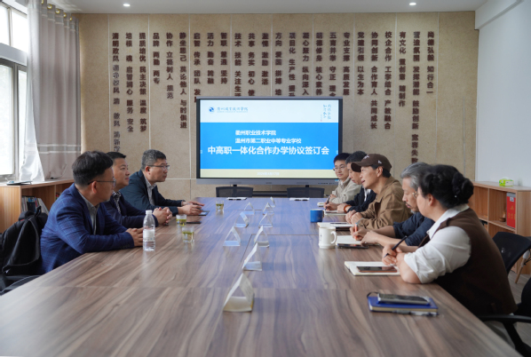 4月17日,我校与温州二职中高职一体化合作办学签约仪式在艺术设计学院顺利举行,艺术设计学院院长叶云龙与温州市第二职业中等专业学校书记雷学远代表双方学校签署了《中高职一体化合作办学协议》,标志着两校的合作迈入新发展阶段。